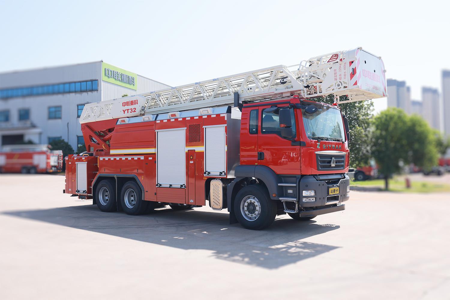 中联牌YT32型汕德卡底盘云梯消防车,结合国内外消防车的先进理念和消防实战创新设计而成,具备强大的灭火功能和高空救援能力。车辆搭载国内一线品牌汕德卡底盘,动力强劲,性能卓越,性价比极高。